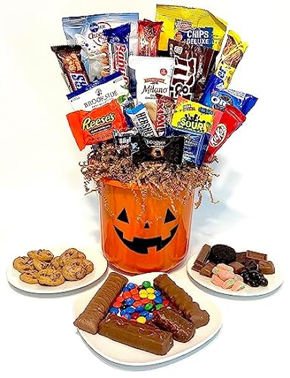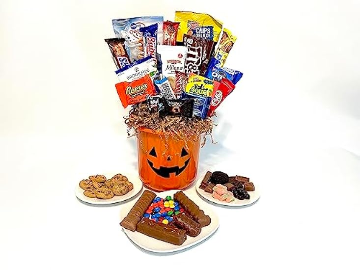 23 Piece Halloween Pumpkin Gift Basket! Hand-Crafted with your favorite chocolates, cookies, and candies! Perfect for kids, adults, teachers, family, and parties!