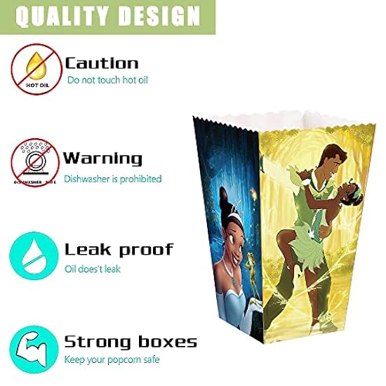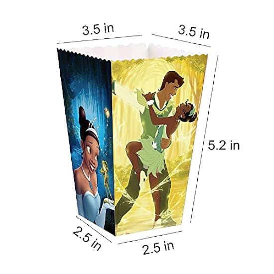 - 【Size】The size of the princess and the frog popcorn box is 5.2in x 3.5in x 2.5in,suitable for popcorn, candy, cookies, chocolate, etc.