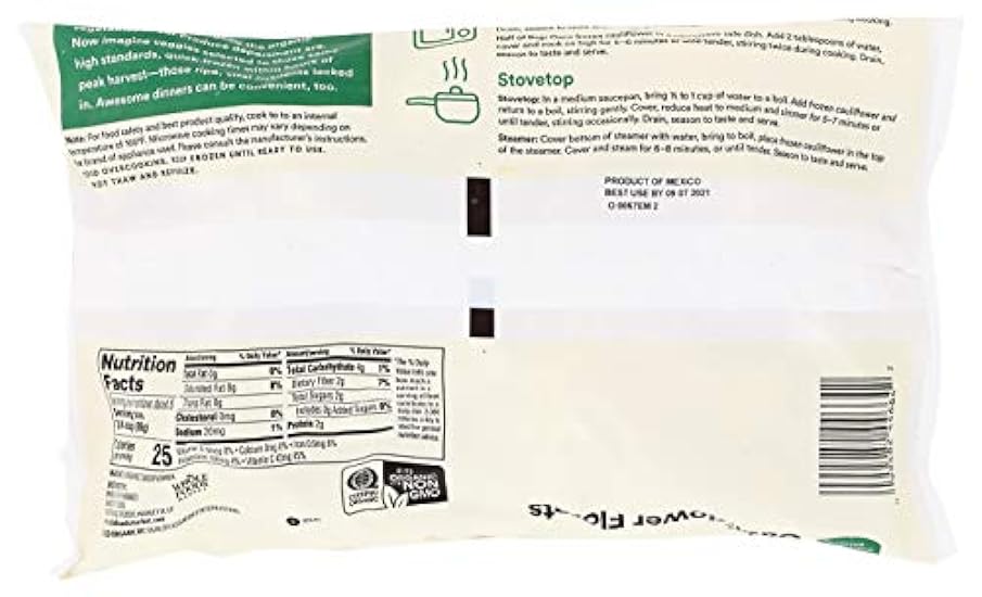 - A convenient and nutritious addition to your shopping list, our cauliflower is organically grown, quick-frozen to preserve flavor and cooks up in minutes-just microwave, steam or boil.