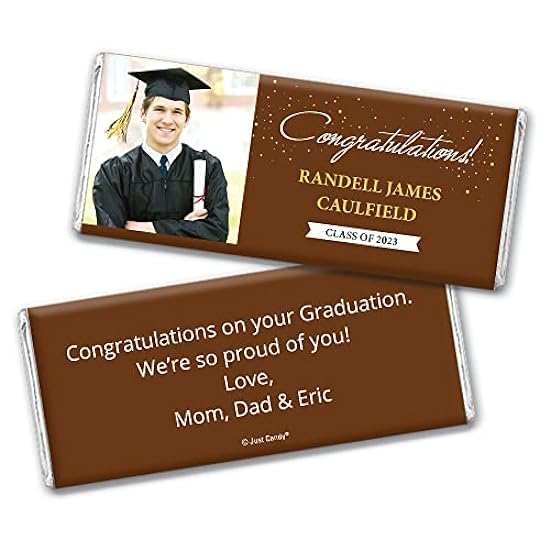 36ct Personalized Graduation Party Favors Engraved Chocolate Bars with Photo – Congrats (36 Count) – Brown