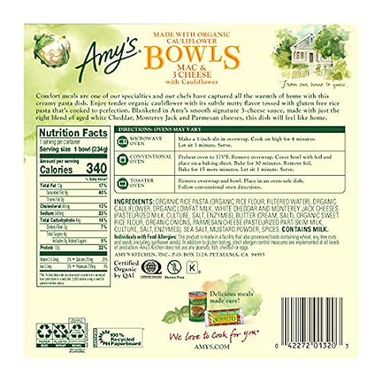 - Made with gluten free rice pasta, tender organic cauliflower and a smooth 3 cheese sauce with just the right blend of aged white Cheddar, Monterey Jack and Parmesan cheeses, these frozen bowls have a delicious flavor everyone will love