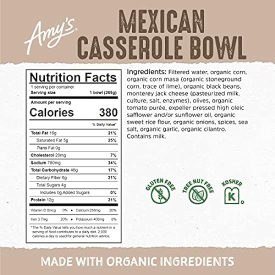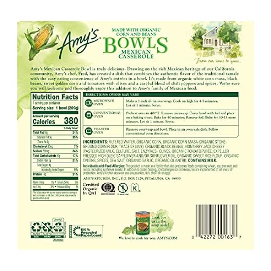 - One single serve bowl of Amy’s Mexican Casserole topped with cheese and enchilada sauce the whole family will love