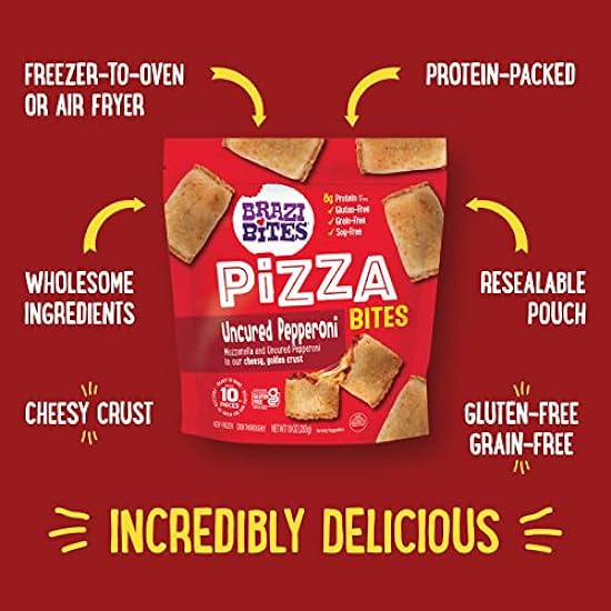 Brazi Bites Cheese & Pepperoni Pizza I Better-For-You Gluten-Free Grain-Free Soy-Free Frozen No Artificial Ingredients Preservatives 10 oz. pouches 4-pack 78031266