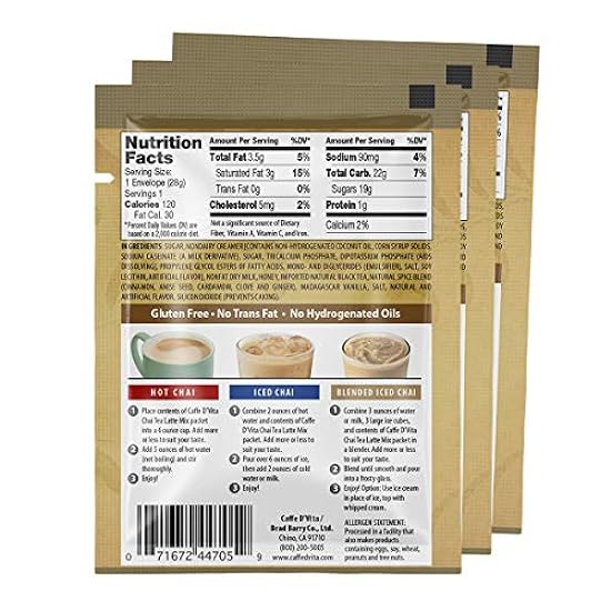 Caffe D’Vita Spiced Chai Latte Mix – Tea Powder Gluten Free No Cholesterol Hydrogenated Oils Trans Fat 1 Oz Packets 12-Pack 152623756
