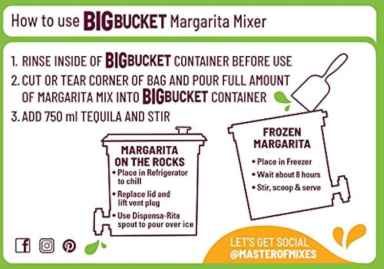 Master of Mixes BigBucket Margarita Mix, Ready to Use, 96 oz Low-Profile, Individually Boxed