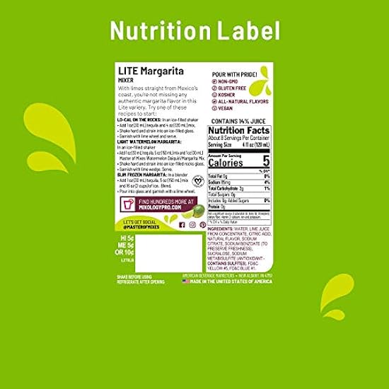 - A HOME BARTENDER’S MUST-HAVE: Your favorite Margarita mix, but with no sugar. Premium Key lime juice from Mexico and a combination of California Lisbon and Eureka lemons make this mixer naturally sweet with 93% fewer calories than the traditional full calorie margarita mix.