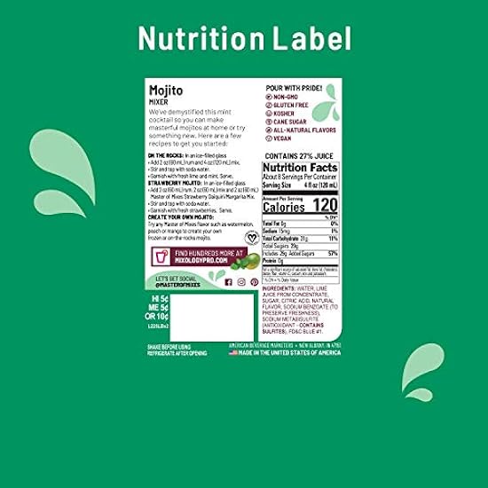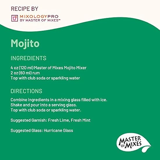 - A HOME BARTENDER’S MUST-HAVE: Crafted balancing fresh ingredients such as mint oils, cane sugar and lime juice to give you a perfectly blended mojito mix. It’s everything you love about a mojito-without all the extra work.