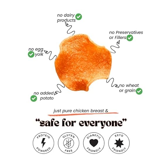 - Just Pure Chicken Breast: Our gluten free chicken chips are made with premium chicken breast and all-natural ingredients for a delicious, savory treat that supports your health and wellness goals
